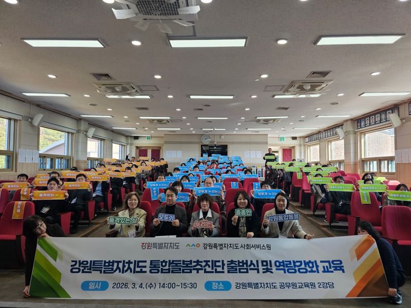 강원자치도는 4일 오후 도 공무원교육원에서 통합돌봄추진단 출범식을 개최했다. 추진단은 도 복지보건국장을 단장으로 도·시군 담당 공무원, 국민건강보험공단, 국민연금공단, 학계 등 보건·의료·복지 분야 유관기관 실무자 80여 명으로 구성된 범조직 협력기구다.