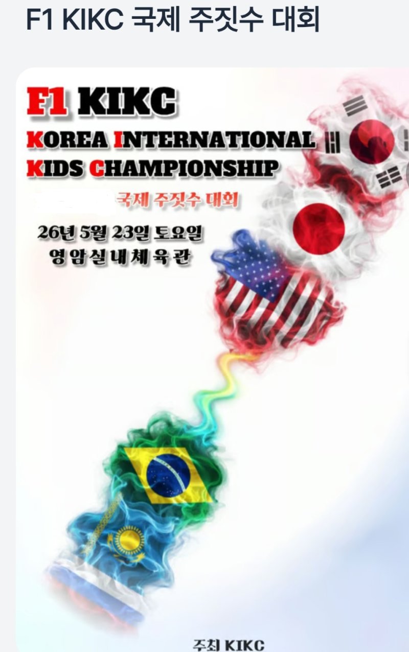 (영암=뉴스1) 김태성 기자 = 국내 최대 규모 주짓수 국제대회인 제2회 '코리아 인터내셔널 키즈 챔피언십'(KIKC)이 오는 5월 23일 영암실내체육관에서 개최된다.