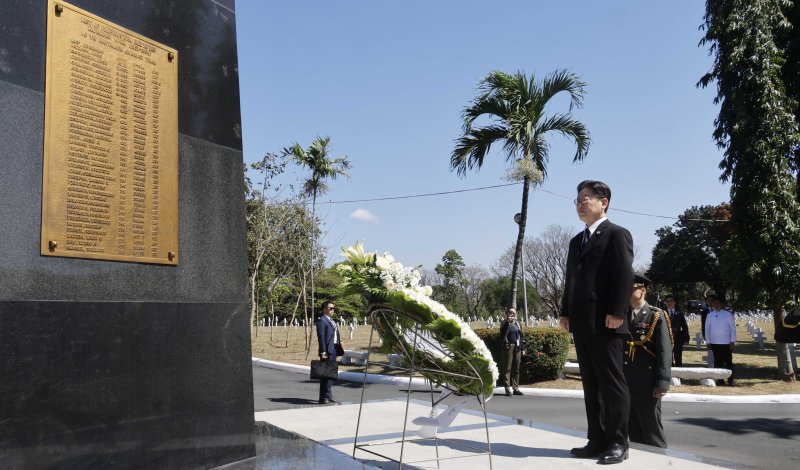 [마닐라=뉴시스] 최동준 기자 = 필리핀을 국빈 방문 중인 이재명 대통령이 4일(현지 시간) 마닐라 영웅묘지 한국전 참전기념비를 방문해 헌화하고 있다. 2026.03.04. photocdj@newsis.com [서울=뉴시스]고범준 최동준 조재완 김지은 기자 = 필리핀을 국빈 방문 중인 이재명 대통령이 4일(현지시간) 한국전쟁에 참전했던 필리핀 용사들을 만나 국내 초청했다.