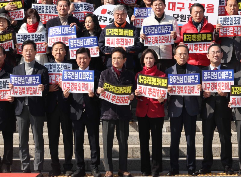 또 "이재명 정부는 똑똑히 들으라. 시·도민의 눈에 피눈물을 나게 하면 그 피눈물이 나중에 그대로 해일이 돼서 돌아갈 것"이라며 "대구·경북을 소외시키고 무시하는 행태를 즉각 중지하고 특별법을 법사위에 상정해 본회의에서 즉각 통과시킬 것을 강력히 촉구한다"고 했다.