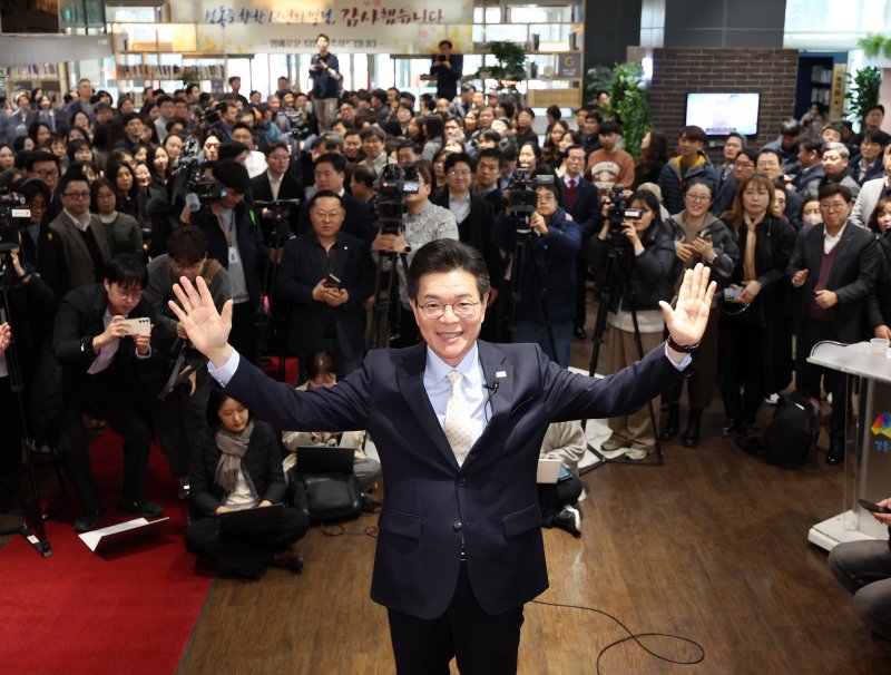 [서울=뉴시스] 박대로 기자 = 서울시장 선거를 준비 중인 정원오 서울 성동구청장이 퇴임하는 날 구청 직원과 주민 등 수백명이 구청사 안팎에서 환송 대열에 동참했다.
