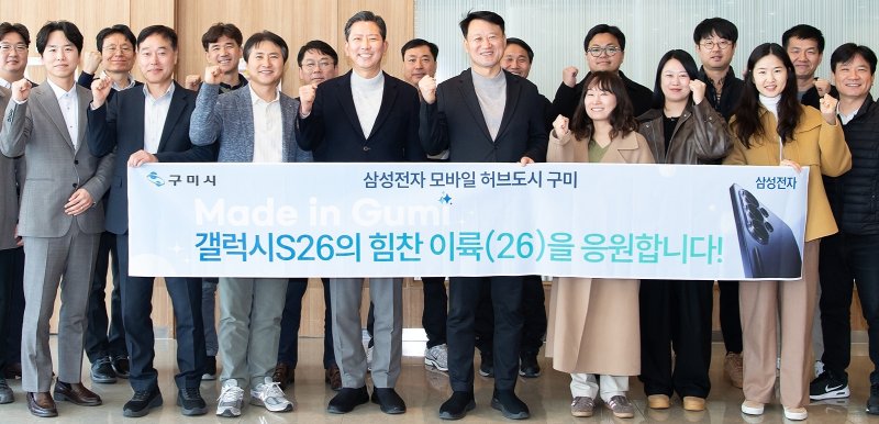 앞서 구미시는 지난달 27일 시청사 건물 외벽에 '메이드 인 구미 갤럭시 S26의 눈부신 비상을 응원합니다'는 문구의 대형 현수막을 내걸고 지역 최대 수출 품목인 모바일 산업을 응원했다.