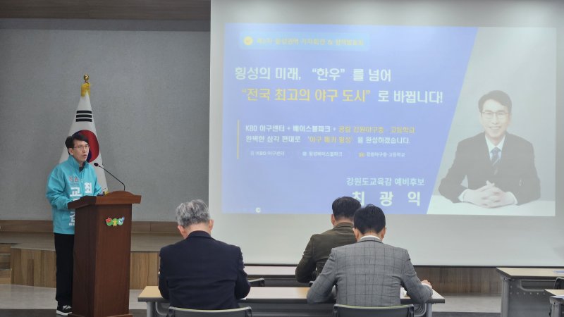 최광익 예비후보는 4일 횡성군청 대회의실에서 기자회견을 열고 "횡성은 KBO 야구센터 유치로 명실상부한 대한민국 야구의 중심이 됐다"며 "횡성베이스볼파크와 KBO 횡성야구센터에 이어 강원 야구 중·고등학교를 완벽한 삼각편대로 연계해 횡성을 전국 최고의 야구 도시로 확고히 탈바꿈시키겠다"고 약속했다.