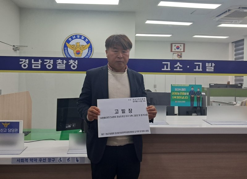 비상대책위 김기현 위원장 등은 4일 경남경찰창 입구에서 입찰비리 의혹을 제기하는 기자회견을 연 후 건설협회 강동국 경남도회장 등 관련자 3명에 대한 고소장을 접수했다.