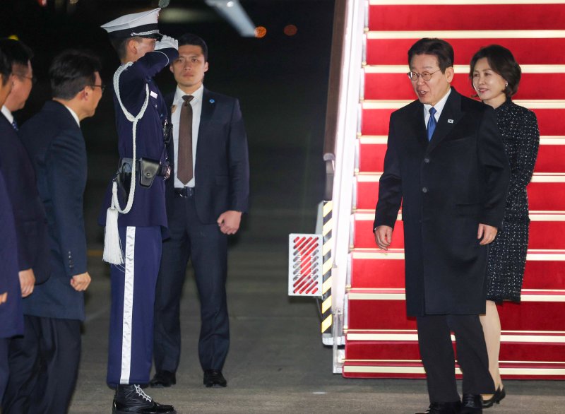 이 대통령 전용기인 공군 1호기는 이날 오후 9시49분 서울공항에 도착했다. 오후 9시51분 공군 1호기 앞에는 김민석 총리, 윤호중 장관, 정청래 대표, 한병도 원내대표, 강훈식 비서실장, 홍익표 정무수석, 김진아 외교부 2차관 순으로 도열해 대기했다.
