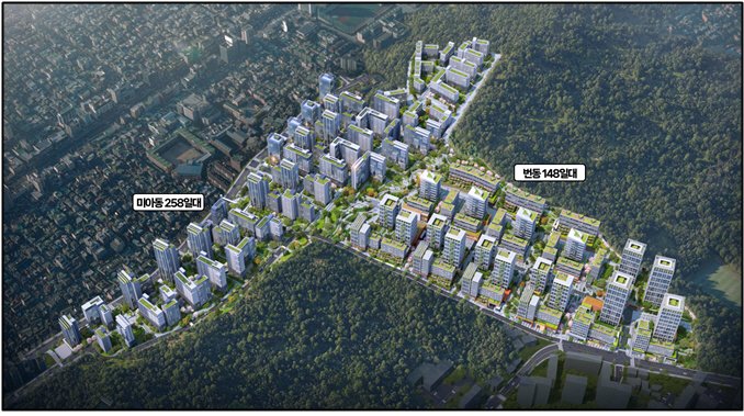미아동 258번지 일대는 용적률 249.91%, 최고 25층 공동주택 4231가구(임대 654가구), 번동 148번지 일대는 용적률 249.8%, 최고 29층 공동주택 3320가구(임대 446가구)가 들어선다.
