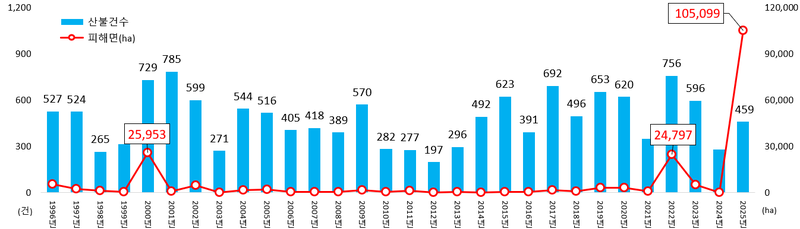 2025년 대형 산불로 10만ha 이상 산림 소실