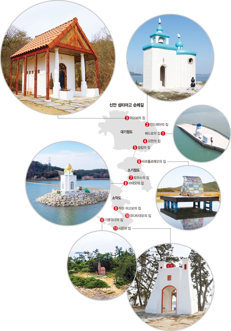 스페인에 산티아고 순례길이 있다면, 국내에는 '섬티아고 12사도 순례길'이 있다. 섬티아고는 전남 신안군이 지난 2020년 조성한 걷기길로, 대기점도·소기점도·소악도·진섬·딴섬 등 신안 앞바다에 보석처럼 박힌 5개 작은 섬을 연결해 만들었다. 여기에 '12사도의 길'이라는 이름이 붙은 건 이곳에 예수의 12제자 이름을 딴 12개의 예배당이 있어서다.