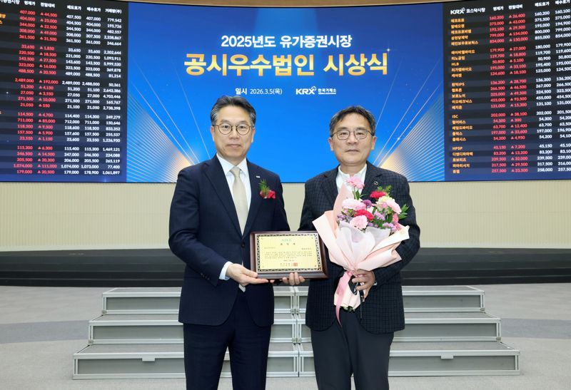 대한항공은 지난 5일 서울 영등포구 한국거래소 서울사옥에서 열린 ‘2025년도 유가증권시장 공시우수법인 시상식’에서 공시우수법인으로 선정돼 표창을 받았다. 공시우수법인은 매년 전체 유가증권시장 상장사 중 체계적인 공시관리시스템을 확립하고 투자자와 적극적으로 소통한 기업에게 주는 표창이다.