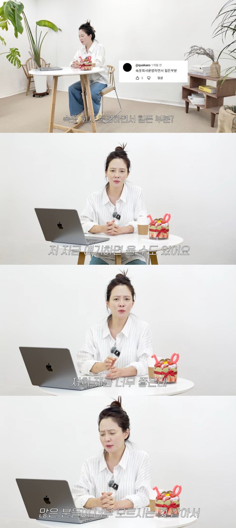 [서울=뉴시스]신지아 인턴 기자 = 배우 송지효가 직접 운영 중인 속옷 사업 제품을 사람들이 몰라준다고 말했다.