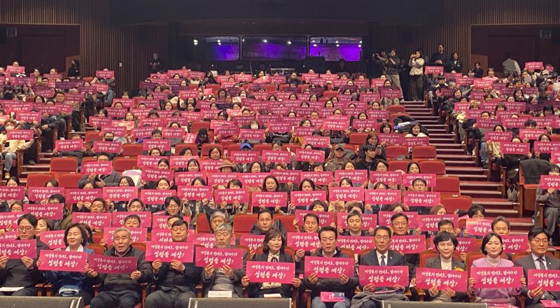 김동명 한국노총 위원장은 개회사에서 "여성의 권리와 존엄에 대한 억압이 개인의 문제가 아닌 사회 구조적 문제임을 인식했을 때 여성 노동자들은 주저 없이 행동에 나섰다"며 "교육받고, 노동하고, 정치에 참여할 수 있는 기본적인 권리를 왜 성별에 따라 제한받아야 하는지, 인간다운 삶을 영위하는 데 성별에 따른 차이가 왜 존재해야 하는지 끊임없이 질문하고, 답을 찾고, 요구하고, 쟁취해 냄으로써 우리 사회 기준을 만들었다"고 말했다.