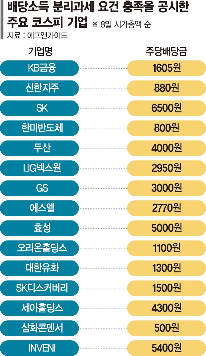 배경에는 제도 변화가 있다. 정부가 추진 중인 배당소득 분리과세 제도는 일정 요건을 충족하는 기업의 배당에 대해 세제 혜택을 부여하는 방식으로, 기업의 배당 확대를 유도하는 정책이다. 이에 따라 일부 기업들은 제도 요건을 충족하기 위해 주당배당금(DPS)을 상향 조정하거나 배당 정책을 재정비하고 있다.