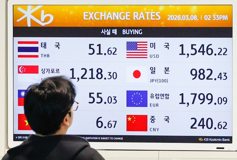 중동 상황으로 인해 환율이 큰 폭의 등락을 거듭하고 있는 지난 8일 인천국제공항 2터미널 환전소에서 여행객들이 환전을 하고 있다. 뉴스1