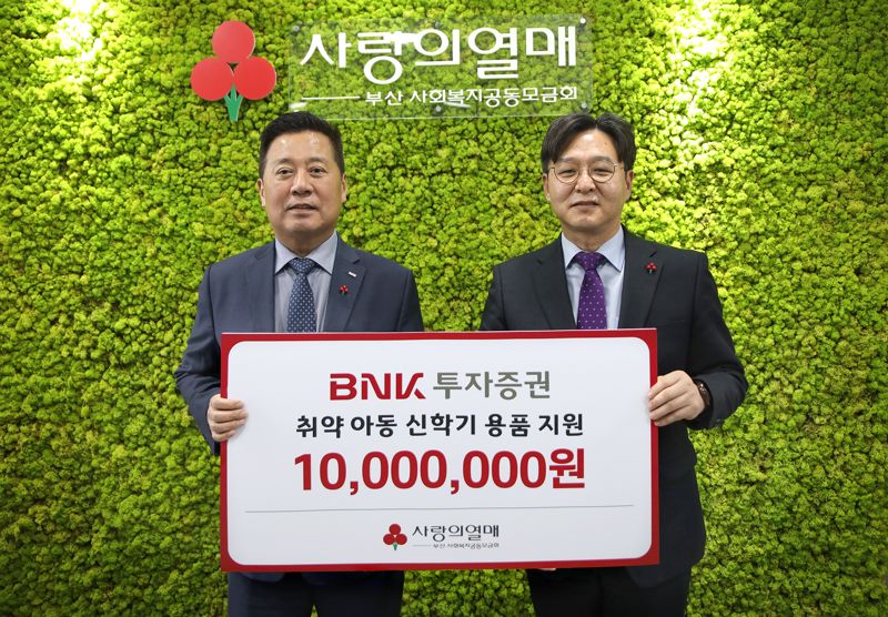 [파이낸셜뉴스] BNK금융그룹의 계열사인 BNK투자증권은 지난 6일 부산사회복지공동모금회에서 학생들의 신학기 지원을 위한 기부금 전달식을 진행했다고 9일 밝혔다.