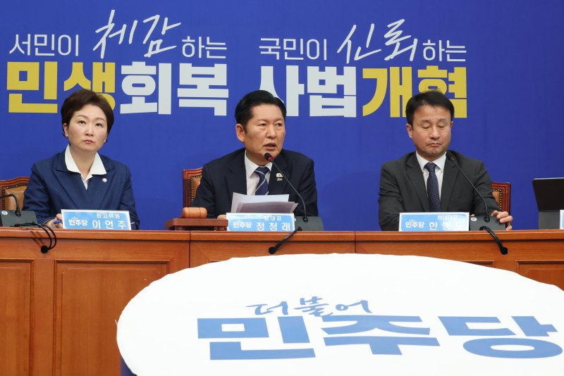 아울러 정 대표는 정유 업계의 유가 담합을 겨냥해 “대국민 범죄”라고 했다. 정 대표는 유가 변동이 주유소 가격에 반영되려면 통상 2~3주의 시간이 걸린다는 점을 짚으며 “전쟁 전부터 재고가 있는데 발발하자마자 담합해 가격 조작으로 폭리를 취하는 것”이라며 “용납할 수 없다. 정부와 힘을 모아 유가 불안으로부터 국민의 삶을 지키겠다”고 했다.
