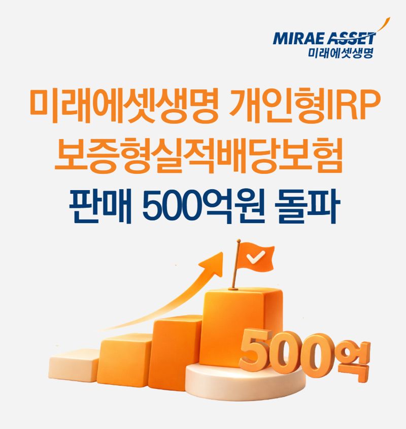 [파이낸셜뉴스] 미래에셋생명은 업계 최초로 출시한 퇴직연금 '보증형 실적배당보험'의 자사 판매액이 출시 9개월 만에 500억원을 돌파했다고 9일 밝혔다.