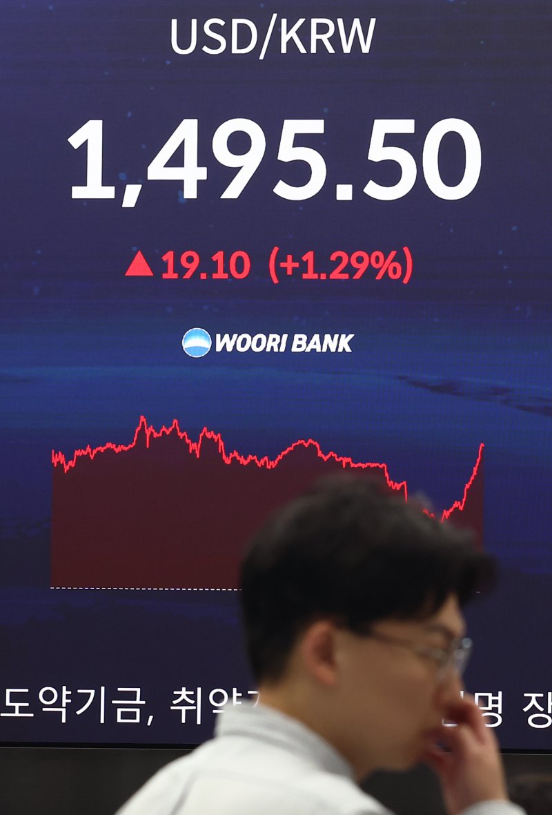 9일 서울외환시장에서 원·달러 환율은 전 거래일 대비 19.1원 오른 달러당 1495.5원에 거래를 마쳤다. 장중 한때 1499.2원까지 치솟으며 변동성이 크게 확대됐다. 주간거래 종가 기준 글로벌 금융위기 당시인 2009년 3월 12일(1496.5원) 이후 가장 높다.