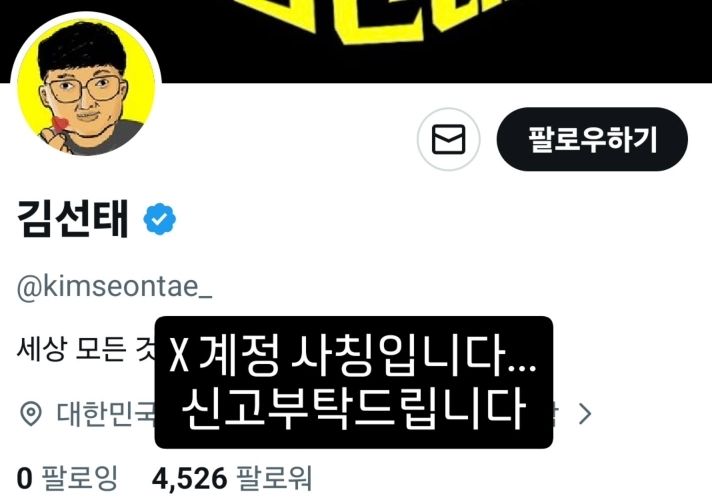 최근 SNS에는 김선태의 이름과 유튜브 채널 문구를 그대로 사용하고 블루 체크까지 받은 계정이 등장해 실제 본인 계정처럼 보이도록 만들어진 사례가 확인됐다.