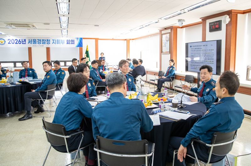 서울경찰청은 10일 오전 박정보 서울경찰청장과 서울 시내 전 경찰서장 등 지휘부 63명이 참석한 가운데 '2026년 서울경찰청 지휘부 회의'를 개최했다고 밝혔다.