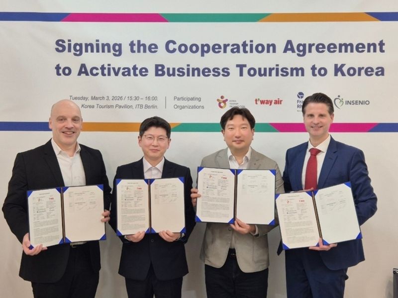 [파이낸셜뉴스] 티웨이항공은 지난 3∼5일(현지시간) 독일 베를린 국제관광 박람회(ITB Berlin 2026)에서 독일 상용고객 유치 촉진을 위한 MOU 협약을 체결하고 방한 비즈니스 관광에 대한 홍보를 진행했다고 10일 밝혔다.
