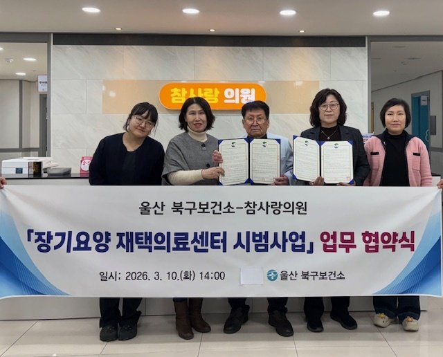 (울산=뉴스1) 김세은 기자 = 울산 북구보건소는 10일 보건소 소회의실에서 참사랑의원과 '장기요양 재택의료센터' 운영을 위한 업무 협약을 체결했다고 밝혔다.