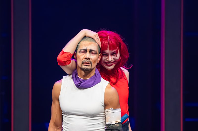 배우들의 에너지는 강렬하다. 14명의 주조연 배우 모두 생동감 넘친다. ‘막베스 처’ 역을 맡아 빨간 머리에 빨간 하이힐을 신고 첫 연극에 도전한 '국악계 아이돌' 김준수의 존재감은 특히나 강렬해 정신이 번쩍 들 정도다. 남편을 조종하는 모습이 너무나 인상적이어서, 죄책감에 따른 그의 몰락이 다소 의아하게 느껴질 정도다. 막베스 역의 김호산은 실제 무술 실력을 바탕으로 사실적인 액션을 펼침과 동시에 진중한 내면 연기로 극의 중심을 잡는다.