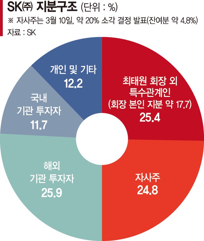 SK㈜ 관계자는 "4조8000억원에 달하는 자사주 전량 소각은 투명하고 주주친화적인 경영을 지속하고 국내 자본시장에 모범적인 선례를 남기겠다는 이사회의 확고한 의지가 담긴 결단"이라며 "기업가치 제고를 위해 주주 신뢰를 강화하고 주주를 최우선에 둔 경영 기조를 흔들림 없이 이어갈 것"이라고 밝혔다.