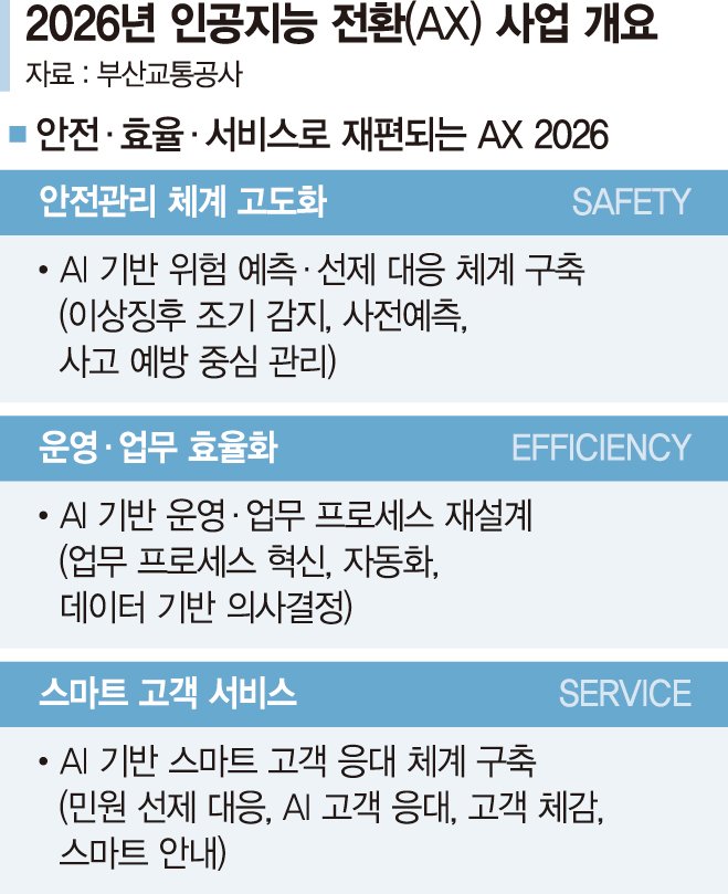 공사 이병진 사장은 "AI정보지원단 출범은 데이터를 수집하고 관리하는 DX 단계를 넘어 도시철도 운영 전반에 AI를 적극 활용하는 AX 경영의 출발점"이라며 "AI 기반 운영 혁신을 통해 시민 안전관리 수준과 서비스 품질을 높여 철도 분야 AX를 선도할 수 있도록 전사적 역량을 집중하겠다"라고 말했다.