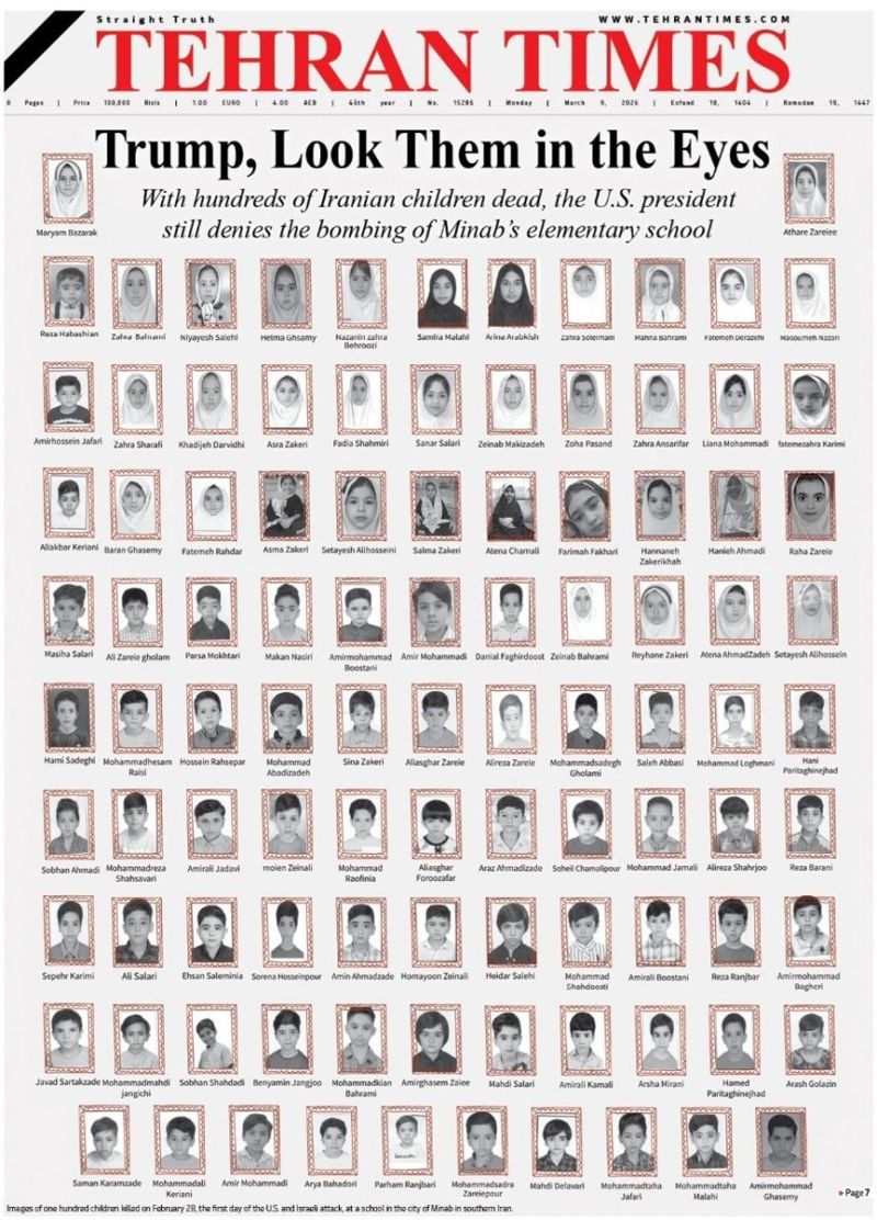 이에 매체는 “수백 명의 이란 아이들이 죽었는데 미국 대통령은 여전히 미나브 초등학교를 향한 폭격을 부인하고 있다”면서 트럼프 대통령의 책임을 주장했다.