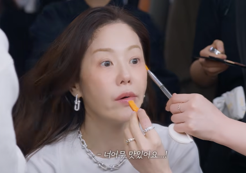 영상에는 고현정이 메이크업을 받으며 간식으로 당근을 먹는 모습이 담겼다.