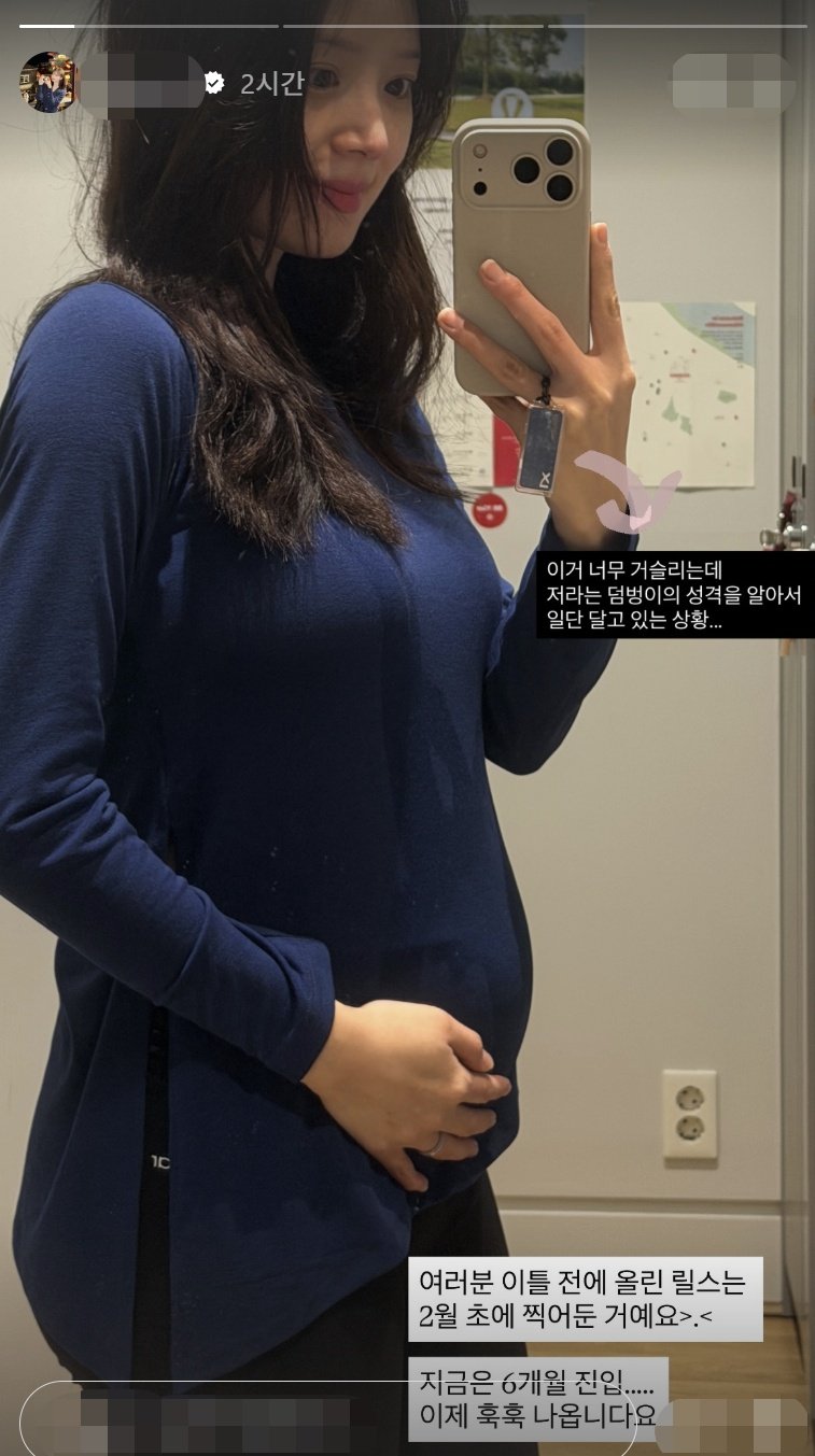 또 "지금은 6개월 진입. 이제 (배가) 훅훅 나옵니다"라고 덧붙였다.