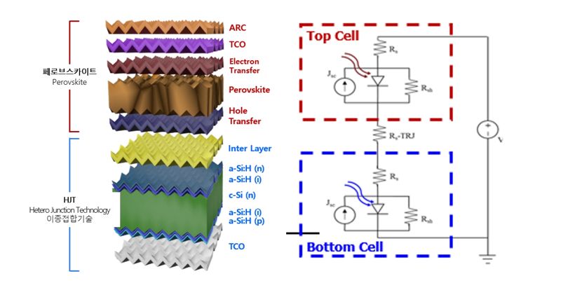 이를 통해 기존 HJT 실리콘 태양전지 상부에 단파장 빛 흡수에 적합한 페로브스카이트를 결합해 효율을 극대화할 수 있었다.