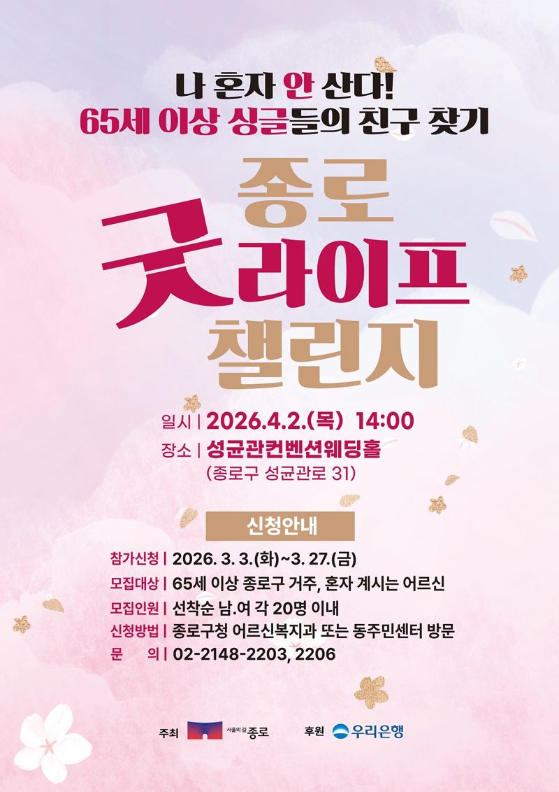 정문헌 구청장은 "어르신들이 새로운 인연을 만나고 사회적 관계를 넓히는 과정에서 삶의 활력과 즐거움을 되찾기를 기대한다"라며 "앞으로도 종로만이 할 수 있는 창의적인 어르신 정책을 지속적으로 발굴해 나가겠다"고 밝혔다.
