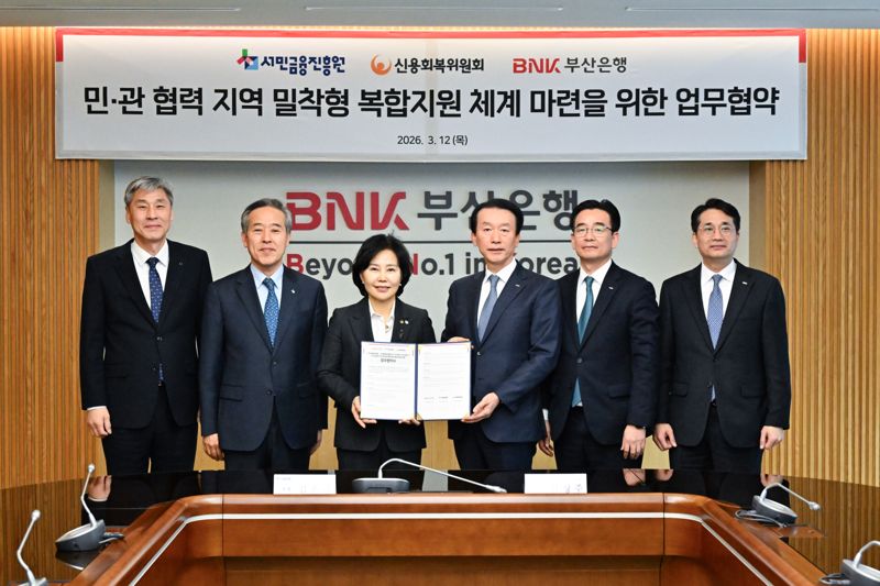 [파이낸셜뉴스] 서민금융진흥원과 신용회복위원회는 12일 BNK부산은행과 지역 밀착형 복합지원 체계 마련을 위한 업무협약을 체결했다고 밝혔다.