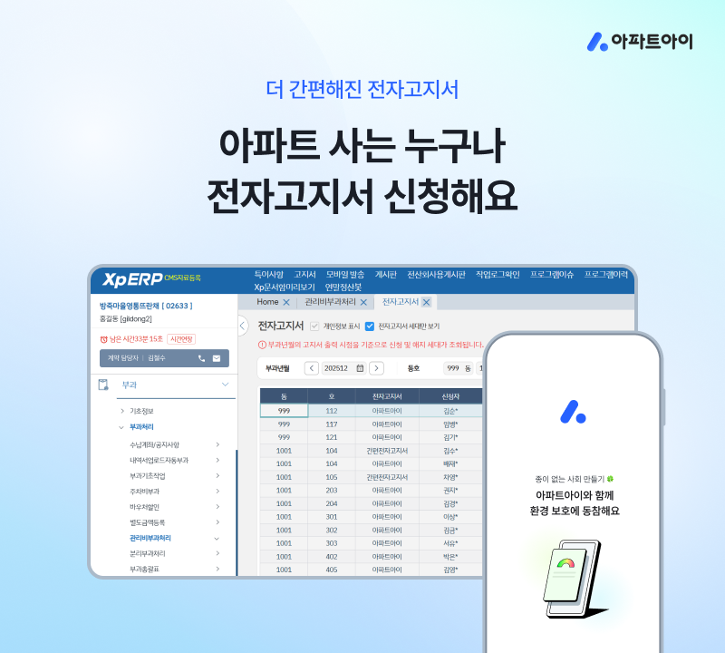 종이 관리비 고지서는 환경 오염은 물론 개인정보 유출 위험성 때문에 개선의 목소리가 높았다. 이번 업데이트를 통해 아파트아이 회원에 국한됐던 기존 전자고지서 서비스를 비회원까지 확장, 누구나 서비스 혜택을 누릴 수 있다.