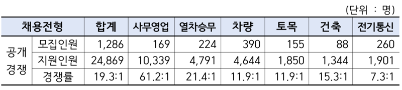 코레일은 지난 11일 서류접수를 마감했으며 서류전형과 필기시험, 실기시험, 면접 등 모든 전형을 블라인드 방식으로 진행한다. 최종 합격자는 5월 말부터 순차적으로 임용될 예정이다.