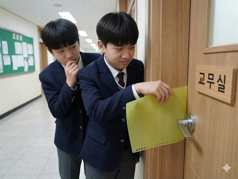 당시 교무실 문은 잠겨 있었으나, 학생들은 책받침으로 문고리를 풀고 내부에 침입한 것으로 알려졌다. 이들은 교사 책상 위에 놓인 새 학기 반 편성 출력물을 휴대전화로 촬영한 뒤 SNS에 게시했다.
