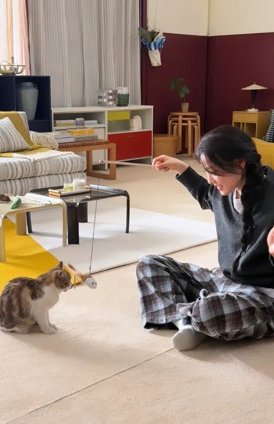 평소 공식 석상에서 보여준 차분하고 도회적인 이미지와 달리, 고양이 앞에서는 한층 부드럽고 친근한 매력을 드러내 눈길을 끌었다.
