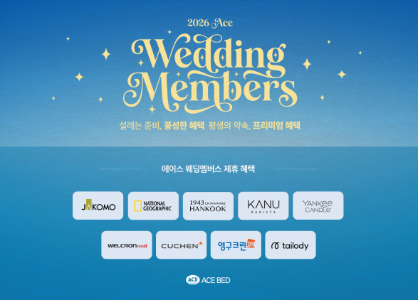 에이스 웨딩멤버스는 청첩장 또는 예식장·플래너 업체 계약서, 혼인관계증명서 등 증빙 서류를 통해 가입할 수 있다. 자세한 내용은 에이스침대 공식 홈페이지에서 확인할 수 있다.