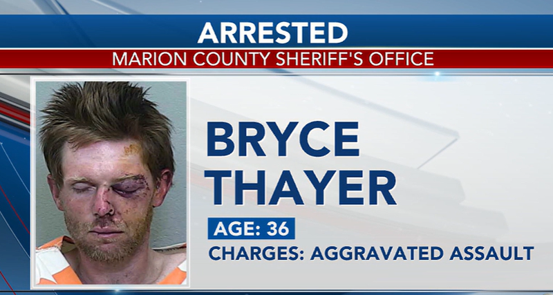 12일(현지시간) 폭스35 올랜도, KOLN 등 현지 매체는 9일 플로리다주 매리언 카운티 보안관 사무실이 세차장에서 도끼로 직원을 위협하며 소란을 피운 용의자 브라이스 테이어(36)를 가중 폭행 및 마약 기구 소지 혐의로 기소했다고 전했다.