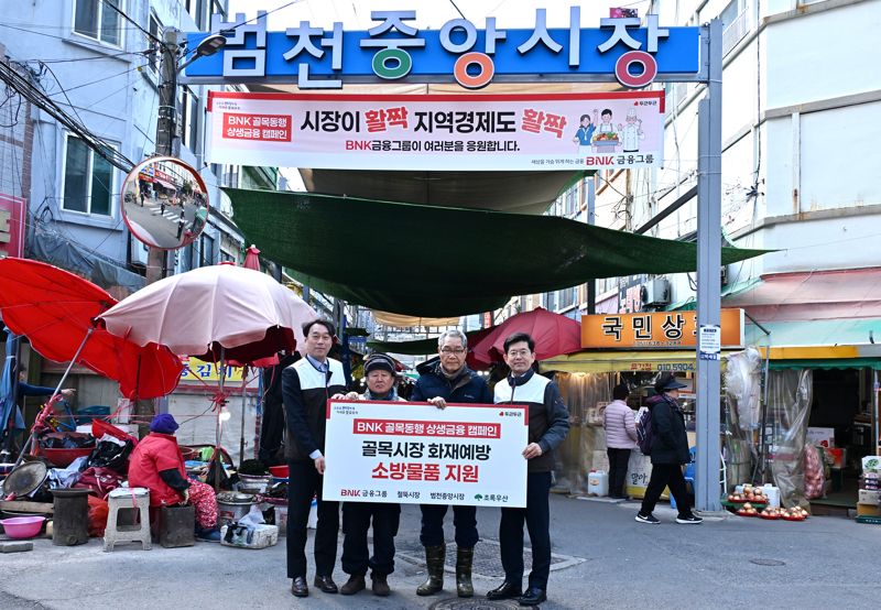 또 전통시장 화재 사고 예방을 위한 지원도 함께했다. BNK금융그룹은 노후화된 시장 점포의 안전 관리에 도움을 주기 위해 소화기 100개, 콘센트용 소화패치 200개 등 화재 예방 물품을 상인들에게 전달하며 안전한 전통시장 환경 조성에 힘을 보탰다.