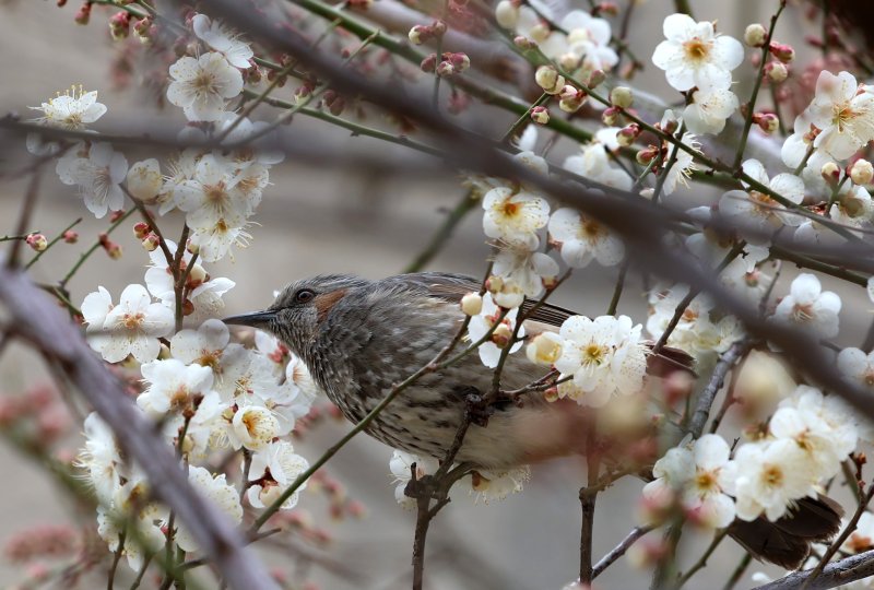 [서울=뉴시스] 이영환 기자 = 15일 오후 서울 성동구 청계천매화거리 매화나무에서 직박구리 한마리가 꿀을 먹고 있다. 2026.03.15. 20hwan@newsis.com [서울=뉴시스] 배훈식 최진석 이영환 기자 = 휴일인 15일 전국 낮 최고기온이 9~15도를 나타내며 봄 기운이 한층 다가왔다.