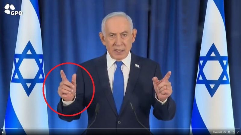 누리꾼들은 "8분 12초 분량의 영상 가운데 34초경 네타냐후 총리가 양손을 들 때 오른손 손가락이 여섯 개로 보인다"고 지적했다.