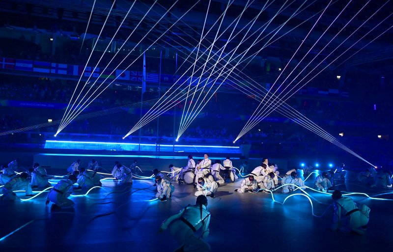 어린 소녀의 꿈을 빌려 스포츠를 통한 자아실현과 성취의 가치를 조명하는 영상으로 시작했고, '태양의 서커스' 출신 공연가 더긴 톡막의 화려한 퍼포먼스와 이탈리아 국민 가수 아리사의 국가 열창이 이어졌다.