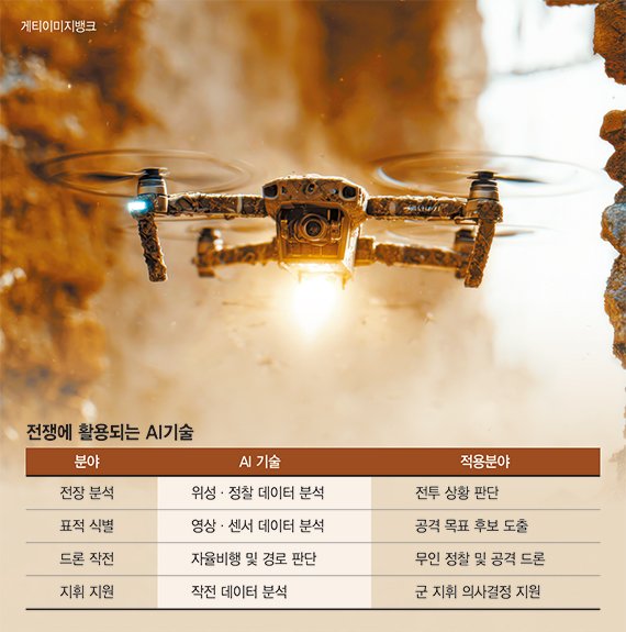 한국군 역시 AI기반 군사 기술 도입을 확대하고 있다. 국방 분야에서는 드론 영상 분석, 무인 정찰 시스템, 전장 데이터 분석 등 다양한 영역에서 AI 활용 연구가 진행 중이다.