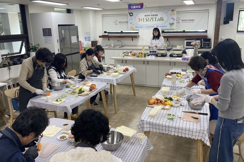 북구는 '중장년 1인 가구 싱글업 사업'을 펼친다. 파크골프·목공예 등 사회관계망 지원은 물론 요리 및 정서 지원 등 일상생활 지원과 반찬 나눔 봉사 같은 지역 활동을 북구가족센터를 통해 지원한다.