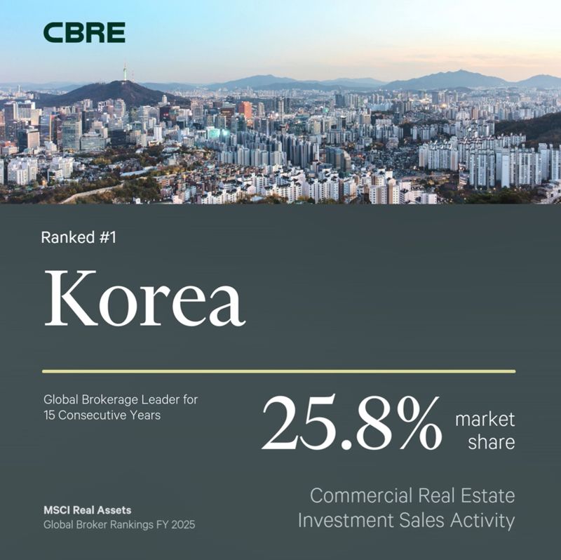 CBRE 아시아태평양 캐피탈 마켓 총괄 그레그 하이랜드는 "변화하는 경제 여건 속에서도 아시아태평양 주요 자산군 전반에서 나타난 CBRE의 성과는 시장 리더십과 고객 신뢰를 입증한 결과"라며 "CBRE는 실시간 시장 정보와 글로벌 투자 자문 네트워크를 바탕으로 고객이 투자 목표를 달성하고 새로운 기회를 포착할 수 있도록 지속 지원할 것"이라고 말했다.