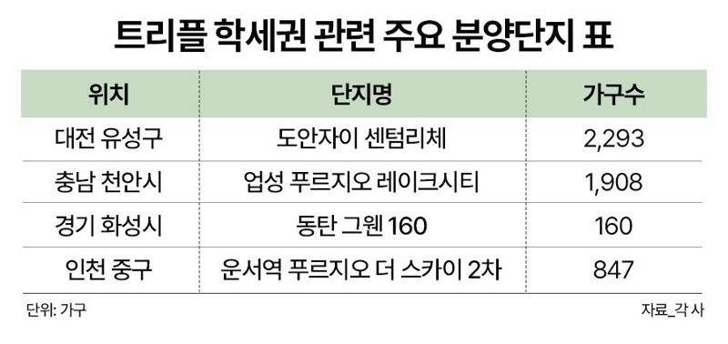 대전·천안·동탄 등 트리플 학세권 신규 분양 잇따라