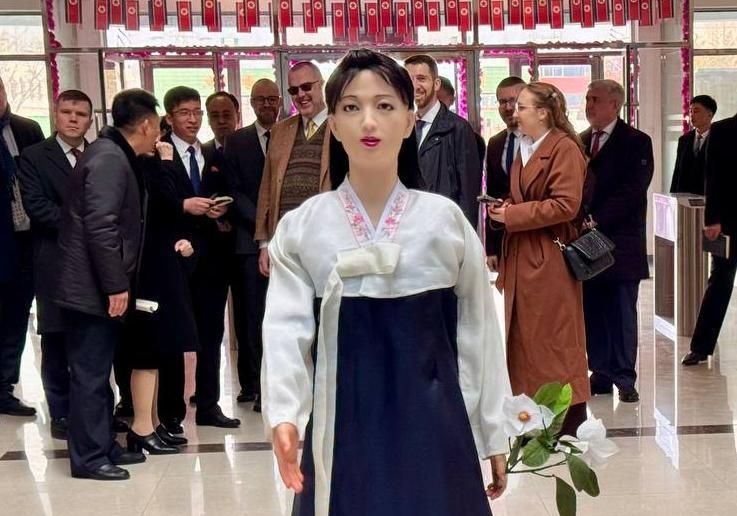 주북 러시아대사관은 15일 텔레그램을 통해 평양교원대학 도서관에 설치된 제77호 선거구 투표소에 여성 모습을 한 로봇이 서 있는 사진을 올렸다. 이날은 북한 최고인민회의 대의원 선거가 치러진 날이다.