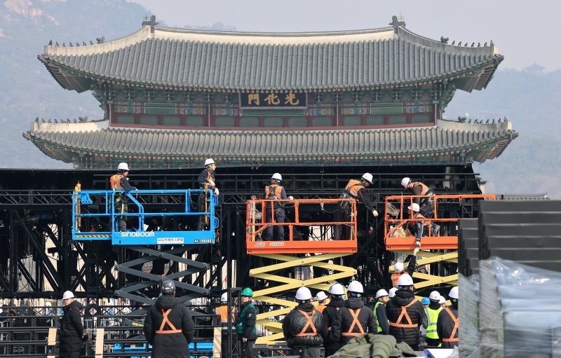 17일 방문한 서울 종로구 광화문 광장 일대는 전날부터 구조물 설치가 진행되면서 통제 구간이 늘고 있었다. 지하철 환풍구 주변에는 안전 펜스가 설치됐고, 일부 보행로는 폭이 좁아져 시민들이 서로 비켜 지나가야 했다.